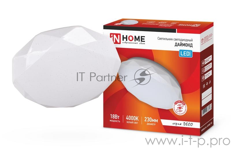 Светильник светодиодный DECO ДАЙМОНД 18Вт 230В 4000К 1170лм 230мм IN HOME 4690612033631