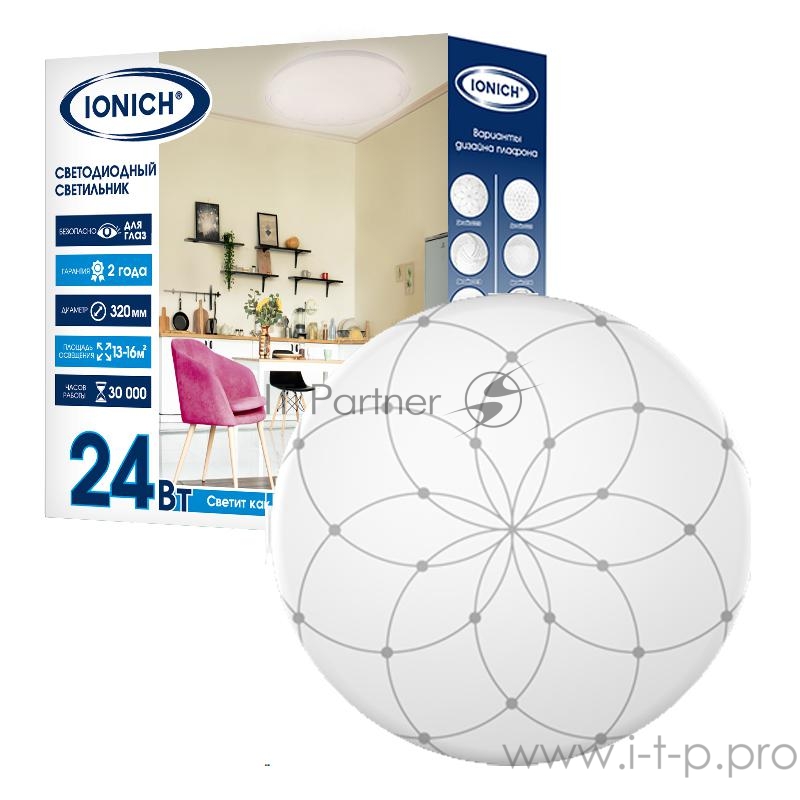 Светильник светодиодный 2219 24Вт 4000К IP20 1680лм d320х60мм бытовой настенно-потолочный IONICH 1698