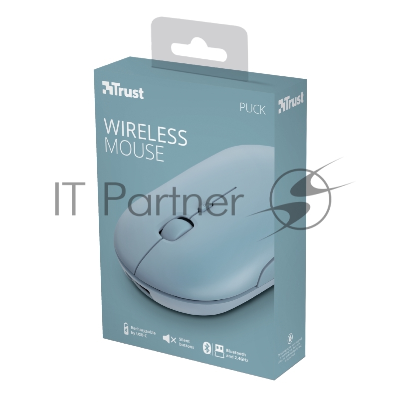 Мышь беспроводная Trust 24126 сверхтонкая аккумуляторная PUCK голубая