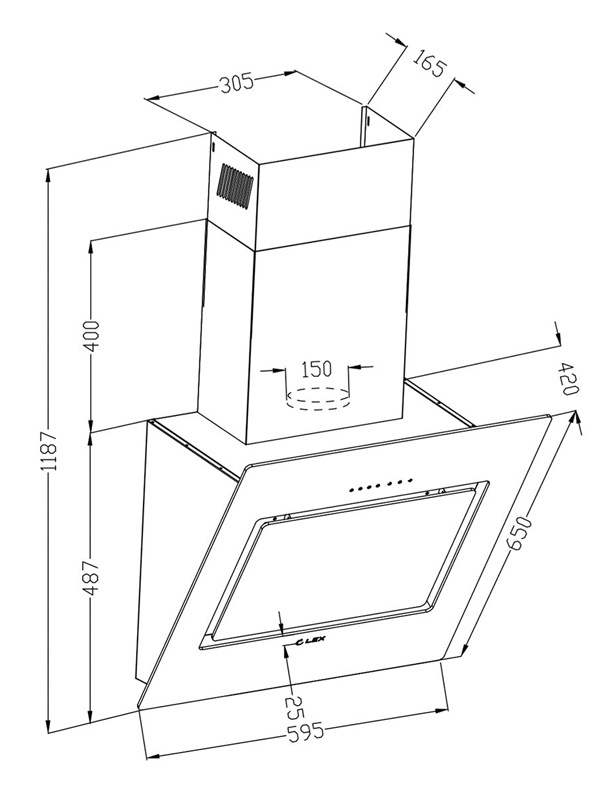 Вытяжка каминная Lex Leila 600 cлоновая кость управление: сенсорное (1 мотор)