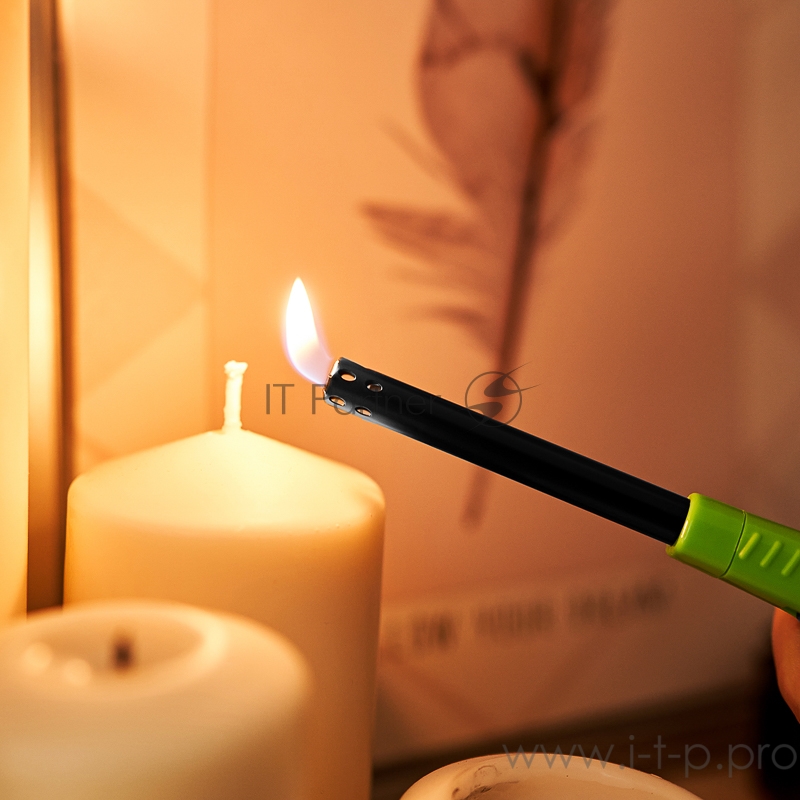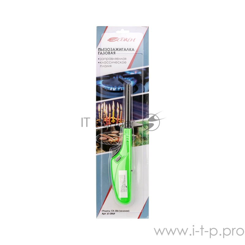 Бытовая газовая пьезозажигалка с классическим пламенем многоразовая (1 шт.) зеленая СК-306 СОКОЛ