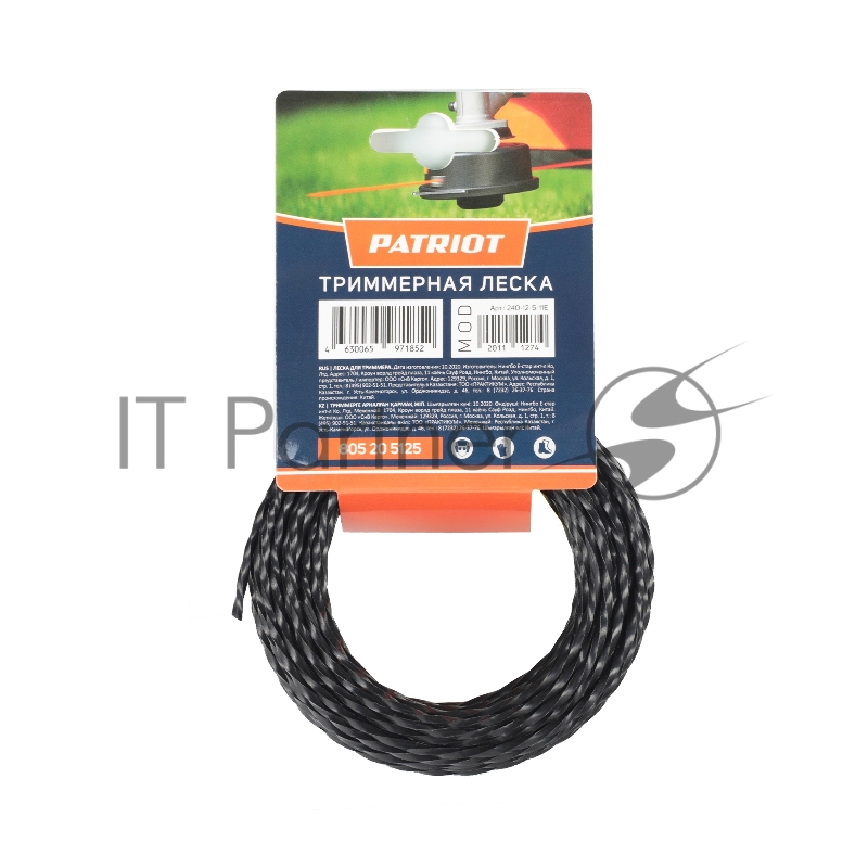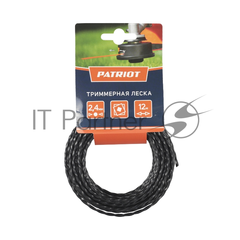 Леска PATRIOT D 2,4 мм L 12 м (скрученный квадрат, черный) 240-12-5, картонный подвес