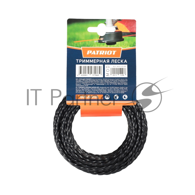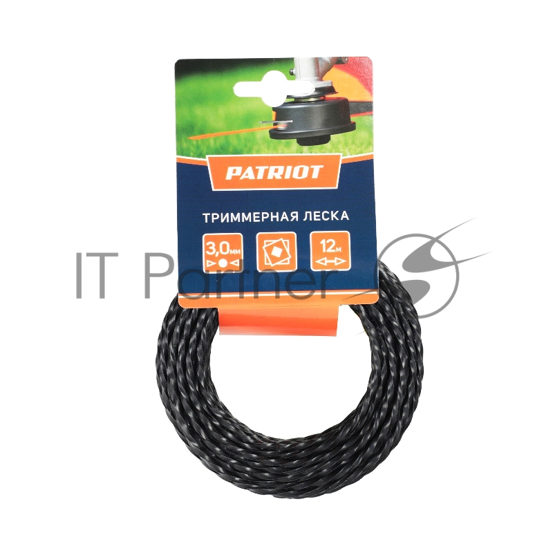 Леска PATRIOT D 3,0 мм L 12 м (скрученный квадрат, черный) 300-12-5, картонный подвес