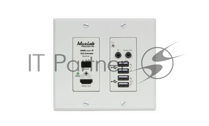 Встраиваемая панель-приёмник MuxLab [500777-RX-WH] HDMI/VGA/USB over IP PoE, UHD-4K цвет - белый