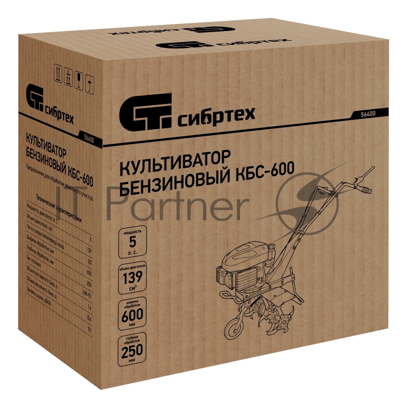 Мотокультиватор СИБРТЕХ КБС-600 5 лс 139 кубсм шир 60 см фрез 3х4 передачи 1В 56400