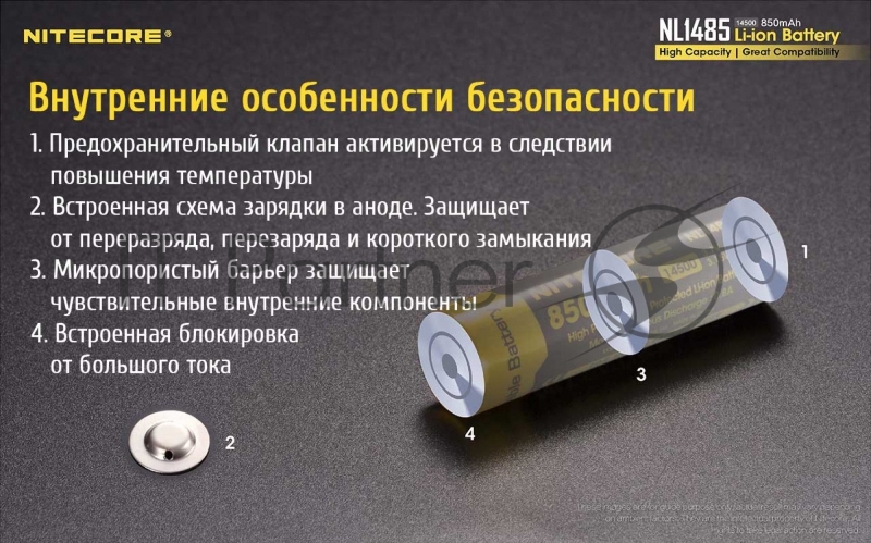 Аккумулятор Nitecore NL1485 14500 Li-Ion 850mAh
