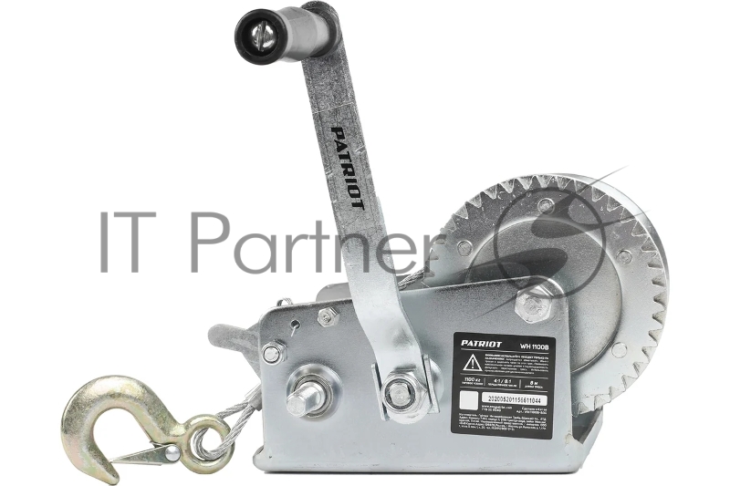 Лебедка ручная барабанная PATRIOT WH 1100B, усилие - 1100 кг, трос- 8 м