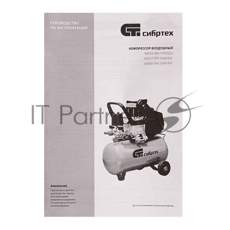 Компрессор СИБРТЕХ воздушный КК-1500/50, 1,5 кВт, 198 л/мин, 50 л, 58039