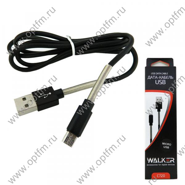 Кабель USB - micro USB WALKER C720 с пружинами черный