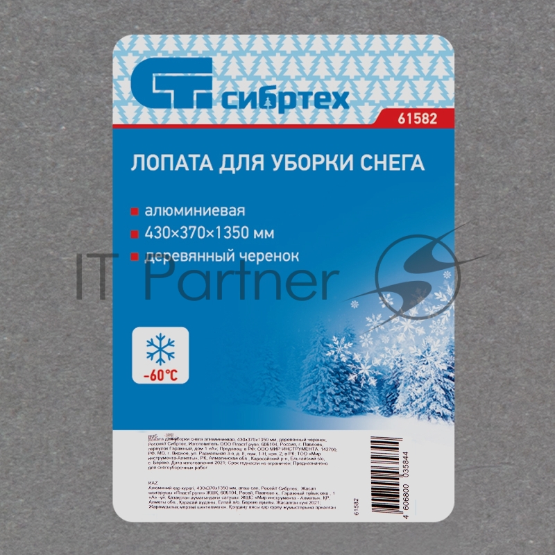 Лопата СИБРТЕХ снеговая,430x370 мм,с черенком,алюм. полотно,стальная окантовка//Р 61582