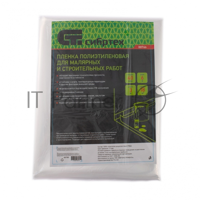 Пленка полиэтиленовая СИБРТЕХ для малярных и строительных работ, 3 х 6 м, 40 мкм/ 88766