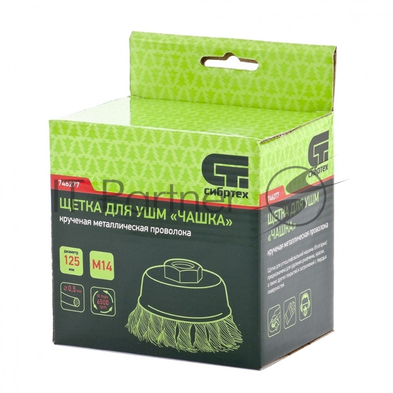 Щетка для УШМ СИБРТЕХ , 75 мм М14, чашка, крученая металлическая проволока 0,5 мм 746247