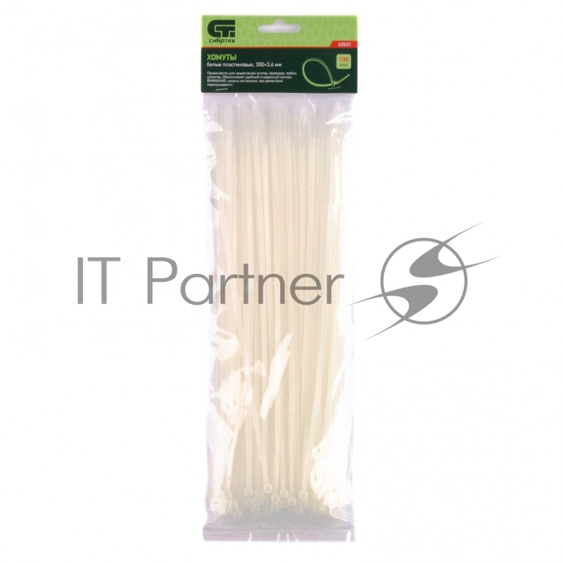 Хомуты СИБРТЕХ ,300x3,6 мм,пластмассовые,белые,100 шт.//45531