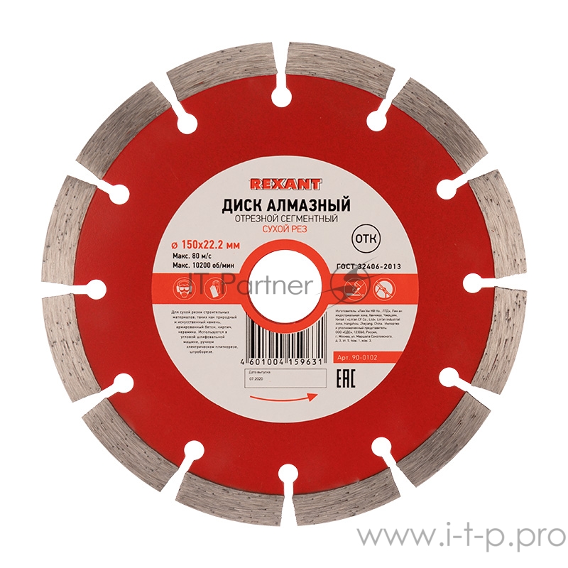 Диск алмазный отрезной сегментный 150x22.23х2x10 мм REXANT