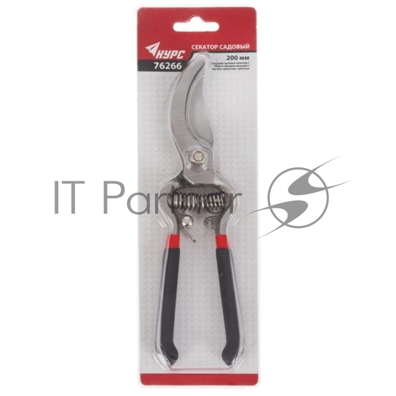 Секатор КУРС 76266 садовый режущие кромки внахлест цельнометаллический пвх покрытие ручек 200мм