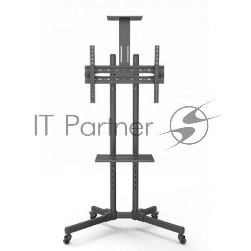 Мобильная стойка Wize Pro [M55] для дисплеев 32 65, Max VESA 600x400 мм, высота 180 см, вертикальная регулировка, регулируемая полка для медиаплеера, полка для камеры ВКС, до 50 кг, черн.