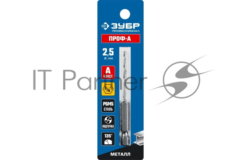 Сверло по мет Зубр НЕХ 1/4 шестиг хвостовик класс A сталь Р6М5 Проф 29623-2.5 d=2 5 мм 29623-2.5