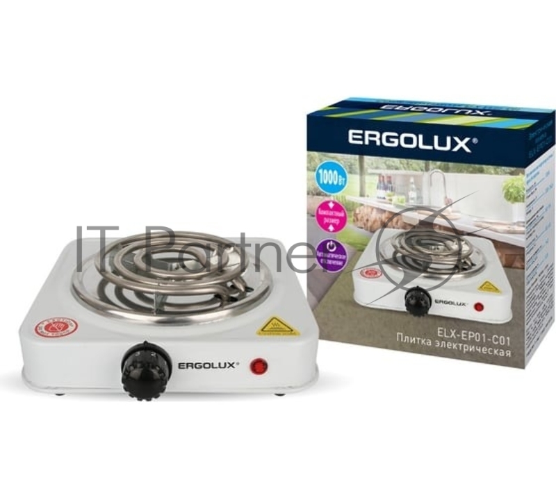 Электроплитка ELX-EP01-C01 1 конф. спиральный нагр. эл. 1000Вт 220-240В бел. Ergolux 13436