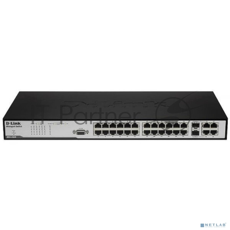 Восстановленный в производственных условиях управляемый L2 коммутатор D-Link DES-3028_RFB/A1 с 24 портами 10/100Base-TX, 2 портами 1000BASE-T и 2 комбо-портами 1000BASE-T/SFP