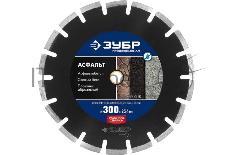 Диск алмазный отрезной АСФАЛЬТ 300 мм, по асфальту, ЗУБР Профессионал