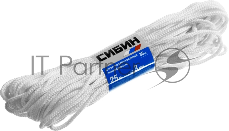 Шнуры и фалы Шнур хозяйственный СИБИН, полиэфирный, длина 25 м, диаметр - 3мм [50263]