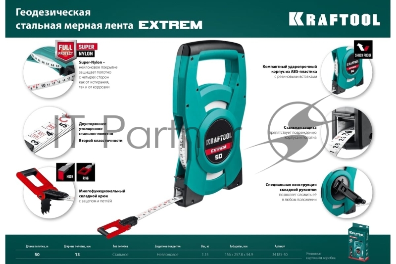 Геодезическая стальная мерная лента KRAFTOOL EXTREM 50 м