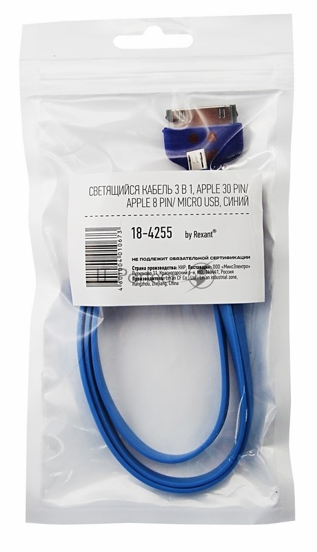 USB кабель 3 в 1 светящиеся разъемы для iPhone 5/4/microUSB шнур 0.15 м синий