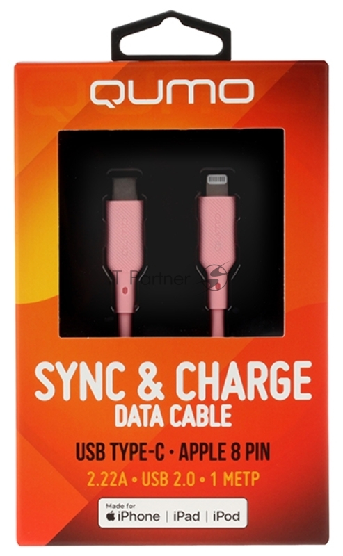 Кабель QUMO, MFI С94, Type-C на MFI Apple 8 pin, силиконовый, 1м, 2,22A, 9V, 20W, PD (розовый)