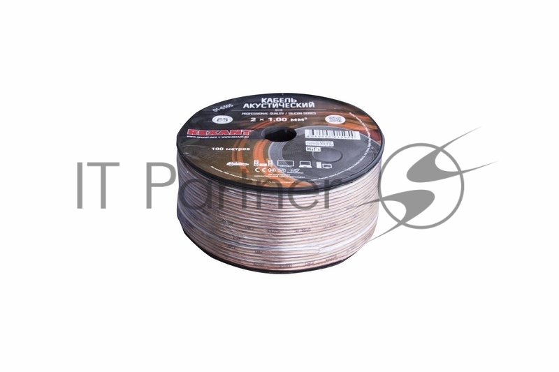 Кабель акустический REXANT 2х1,00 мм², прозрачный SILICON, бухта 100 м