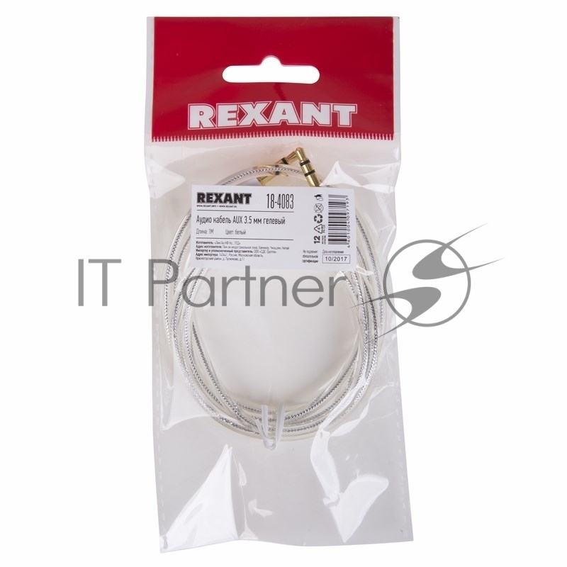 Аудиокабель AUX 3.5 мм гелевый 1 м белый REXANT