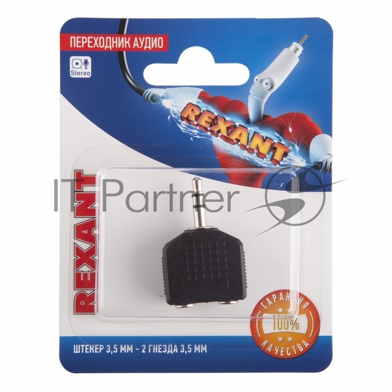 Переходник аудио (штекер 3,5мм. стерео - 2 гнезда 3,5мм. стерео), (1шт.) REXANT