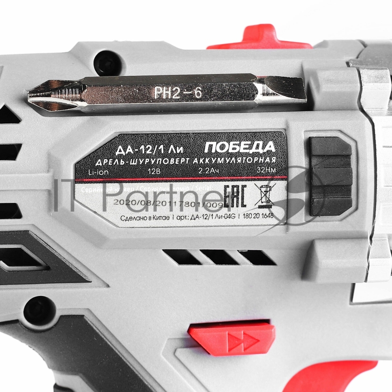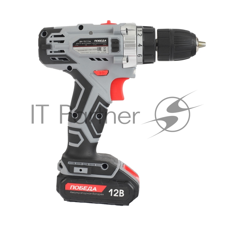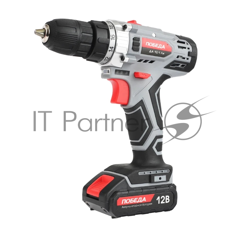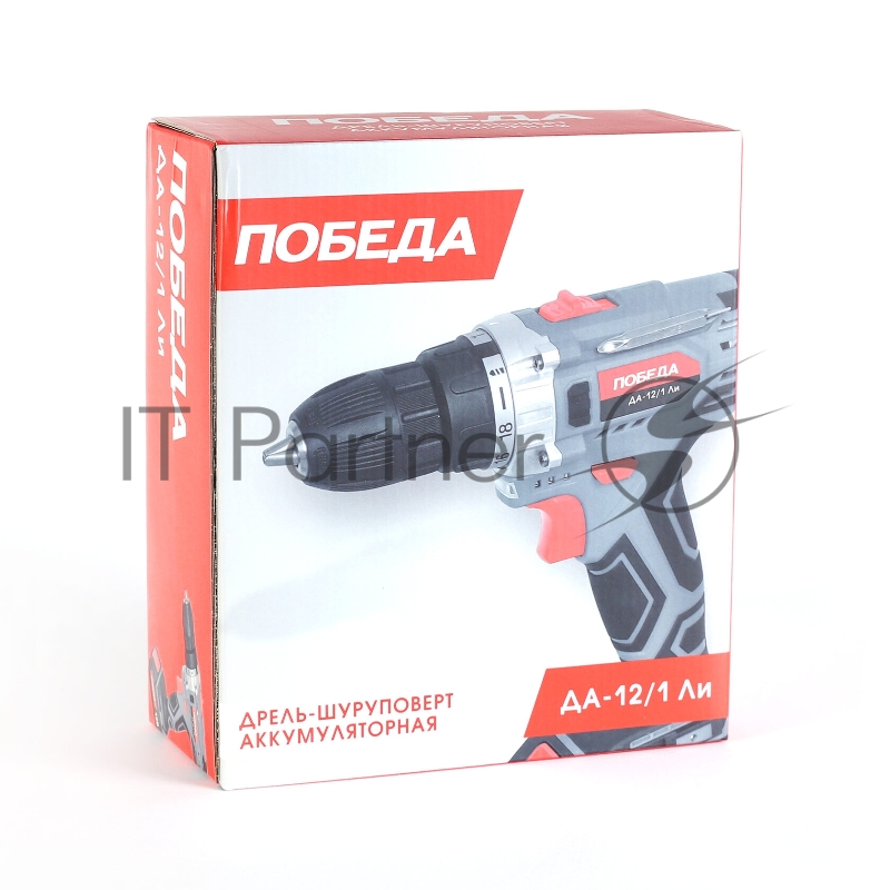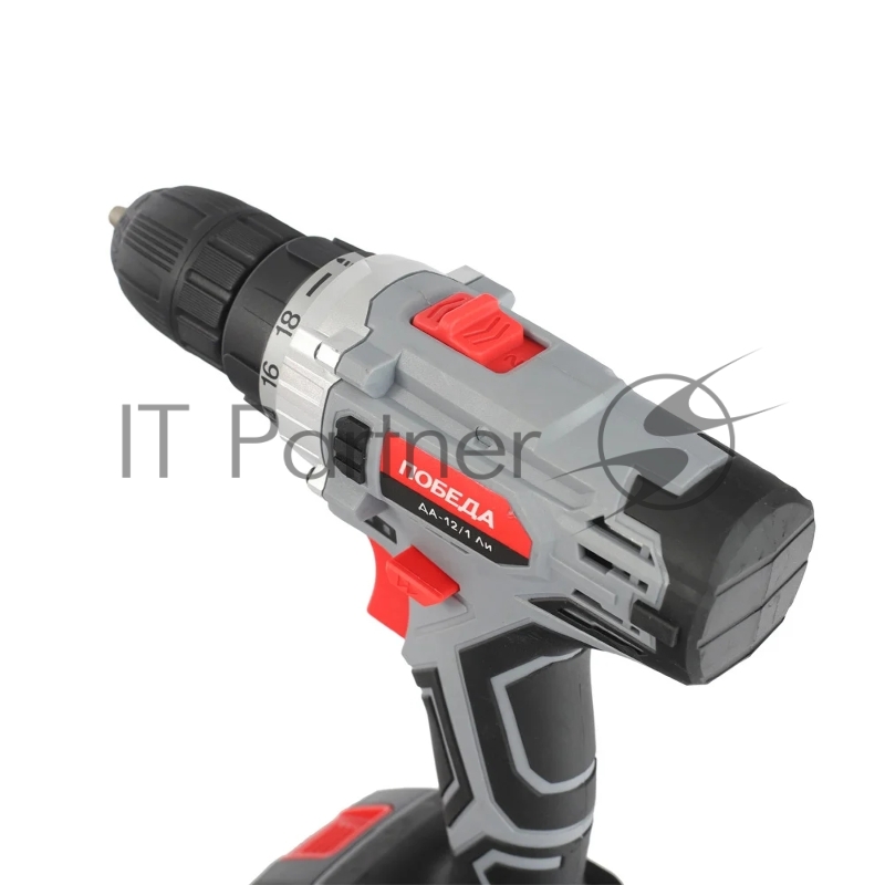 Дрель-шуруповерт аккумуляторная ПОБЕДА ДА-12/1Ли, 12В, 32 нм, быстрая зарядка, 1 батарея, цветная коробка