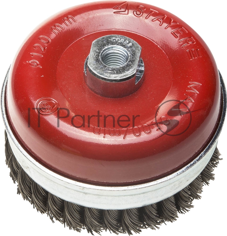 Щетка STAYER чашечная для УШМ, закал сплет сталь провол 0,5мм с бандаж,120мм/М14