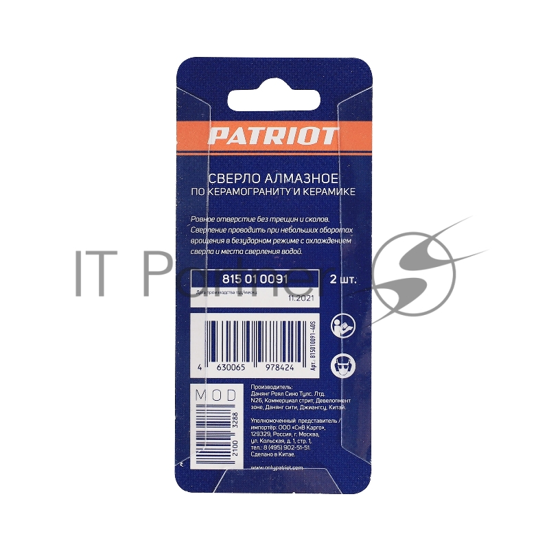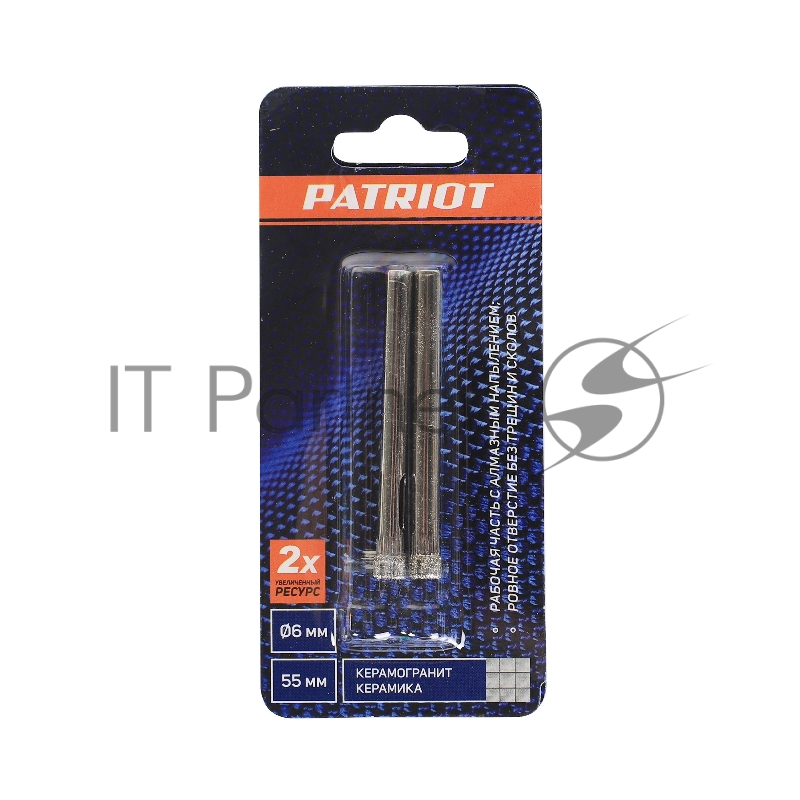 Сверло PATRIOT алмазное по керамограниту и керамике 6 мм, 2шт в блистере