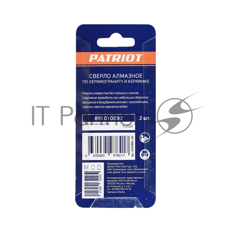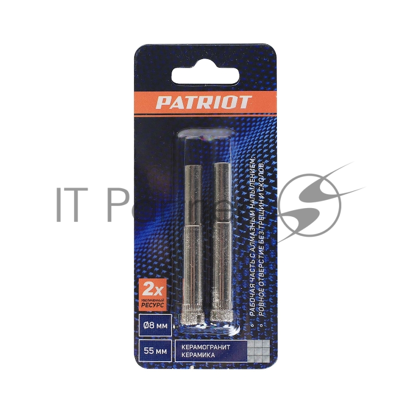 Сверло PATRIOT алмазное по керамограниту и керамике 8 мм, 2шт в блистере