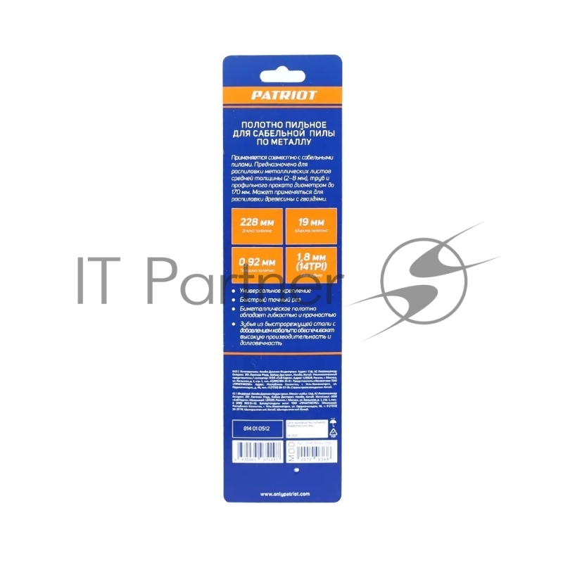 Полотно пильное PATRIOT для сабельной пилы, по металлу 228*19*0.92мм*14T 2 шт.