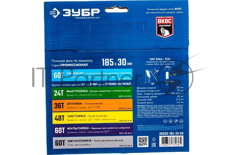 Диск пильный по ламинату, ЗУБР Ламинат 185х30мм 60Т