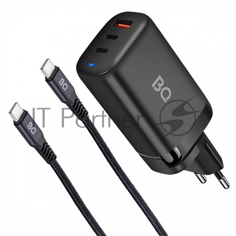Зарядное устройство BQ Charger 65W3A01 (3 ports 2*Type-C + USB, 65W with 2m Type-C cable) black
