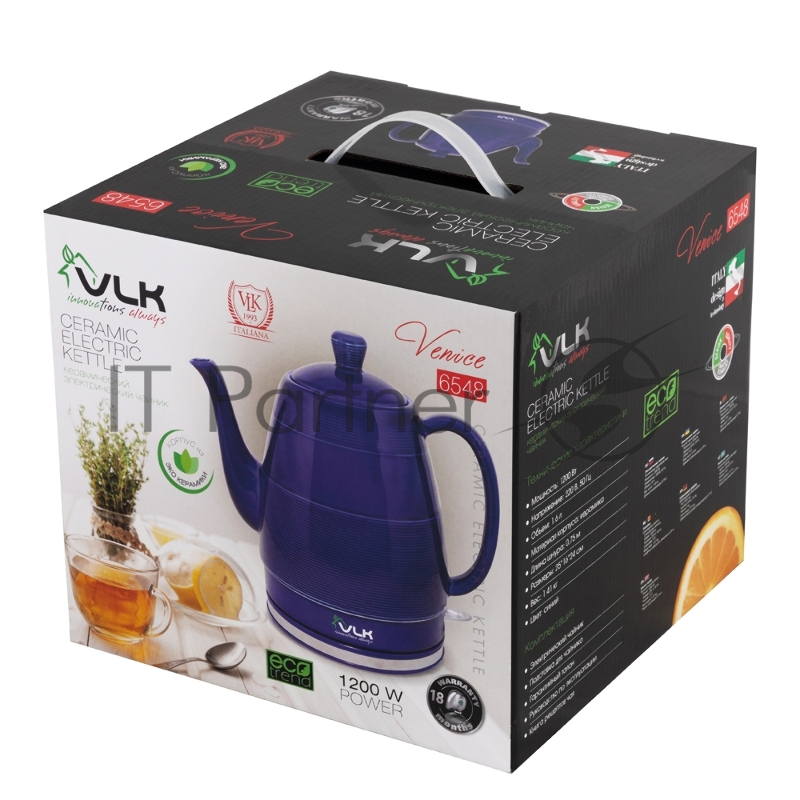 Чайник электрический керамический VLK Venice 6548 1200 Вт, емкость 1,6 л, фиолетовый, 6 шт/уп.
