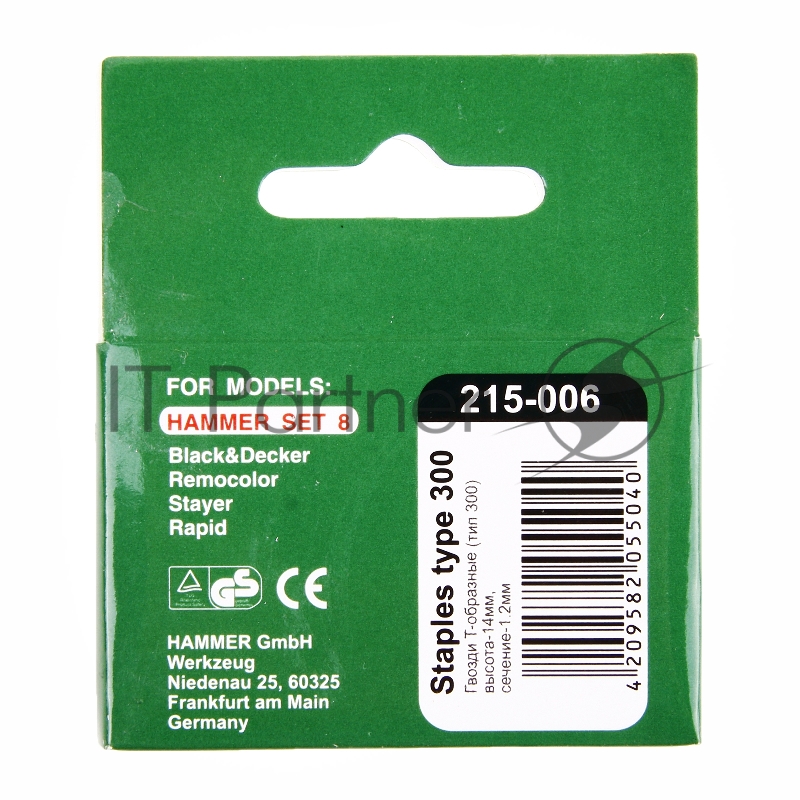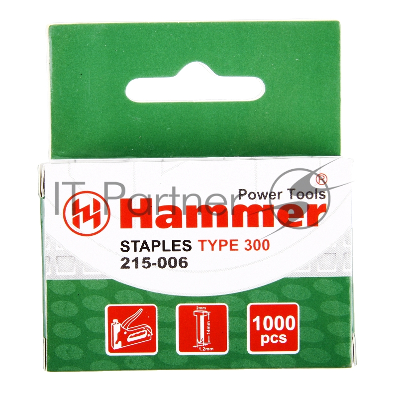 Гвозди для степлера Hammer Flex 215-006 14мм, сечение 1.2мм, T-образные (тип 300), 1000шт.