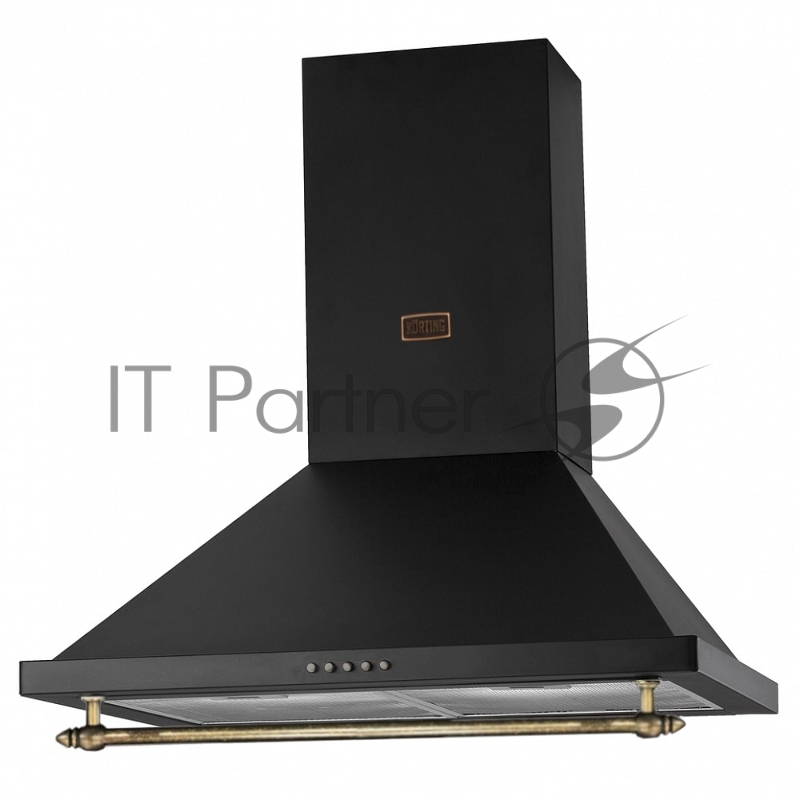 Вытяжка купольная Korting KHC 6750 RN / 60 см, черный, цает кнопок - бронза, Мощность: 750 м3/ч, Уровень шума: 54 дБ, 3 режима, Механическое управление, Алюминиевые жировые фильтры, 2 галогеновые лампы освещения: 2*20 Вт