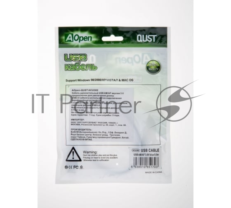 Кабель удлинительный USB3.0 Am-Af 0,5m Aopen