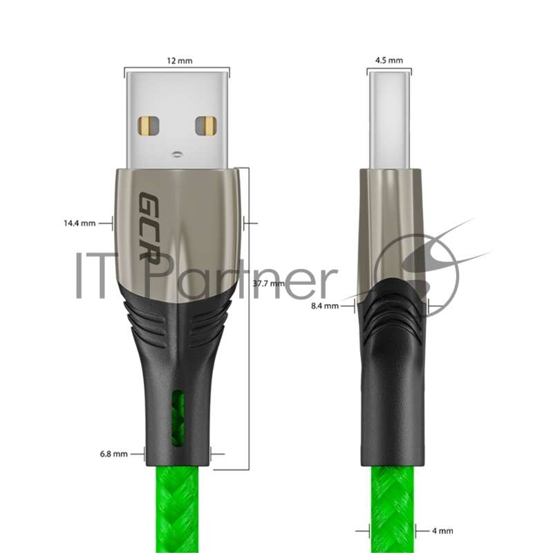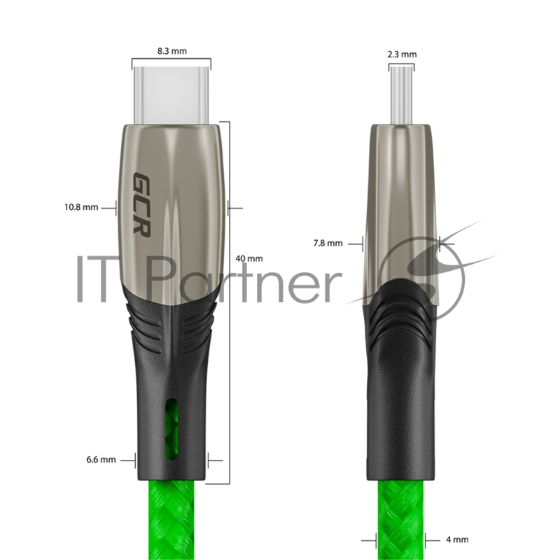 Кабель GCR 1.7m TypeC series MERCEDES, GREEN NYLON, супер быстрая зарядка, GCR-51988