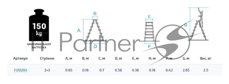 Стремянка Новая Высота NV 1120 двусторонняя алюминий 3ступ. (1120203)