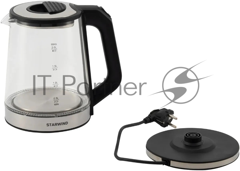 Чайник электрический Starwind SKG5778 2л. 2000Вт черный/прозрачный (корпус: стекло)