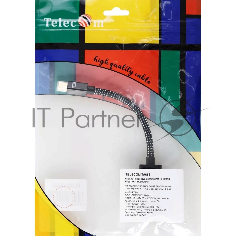 Адаптер miniDP-M --> HDMI-F 4K@120Hz, 8K@30Hz, оплетка, 0.15м Telecom (TA663)
