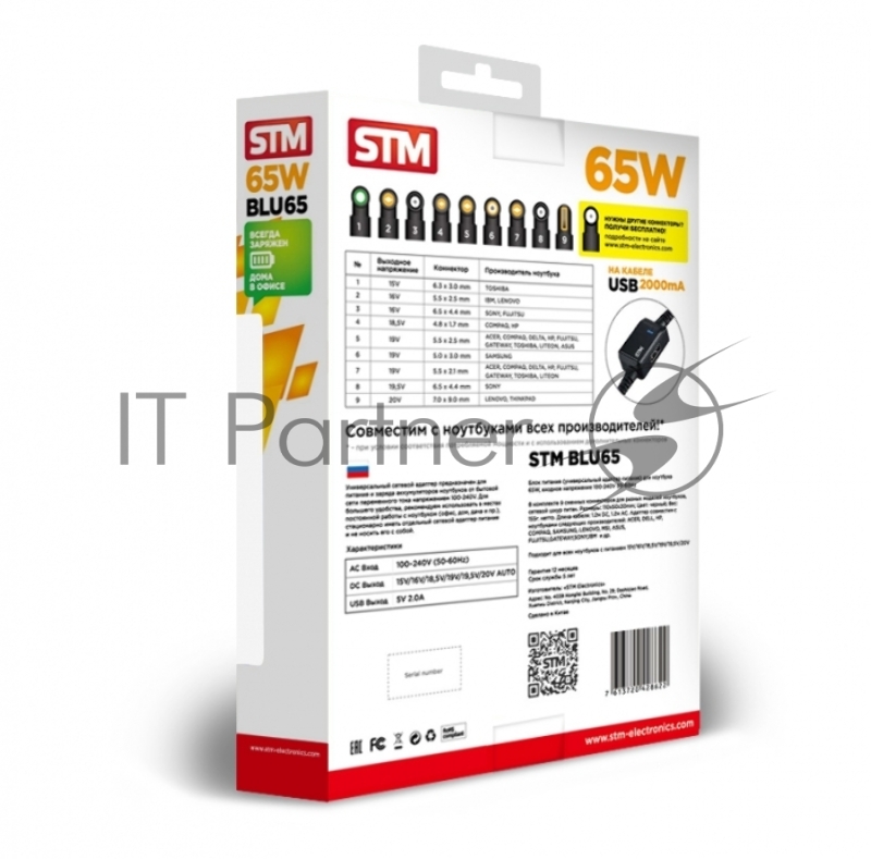 Универсальный блок питания для ноутбуков STM BLU65 65Вт, USB