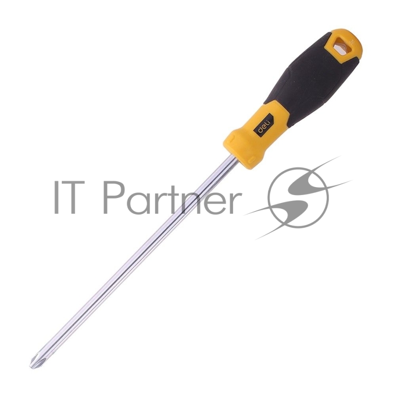 Крестовая отвертка Deli DL638200 PH3x200мм Материал: CR-V. Двухкомпонентная ручка. Хромированная.