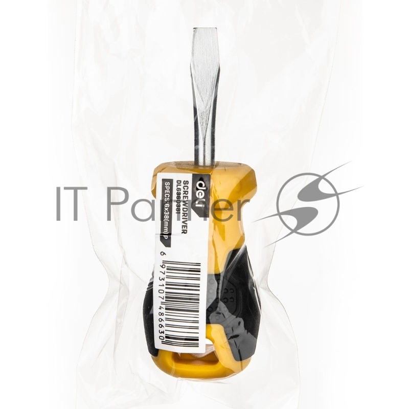 Шлицевая отвертка Deli DL6360381 6х38мм Материал: CR-V. Двухкомпонентная ручка. Хромированная.