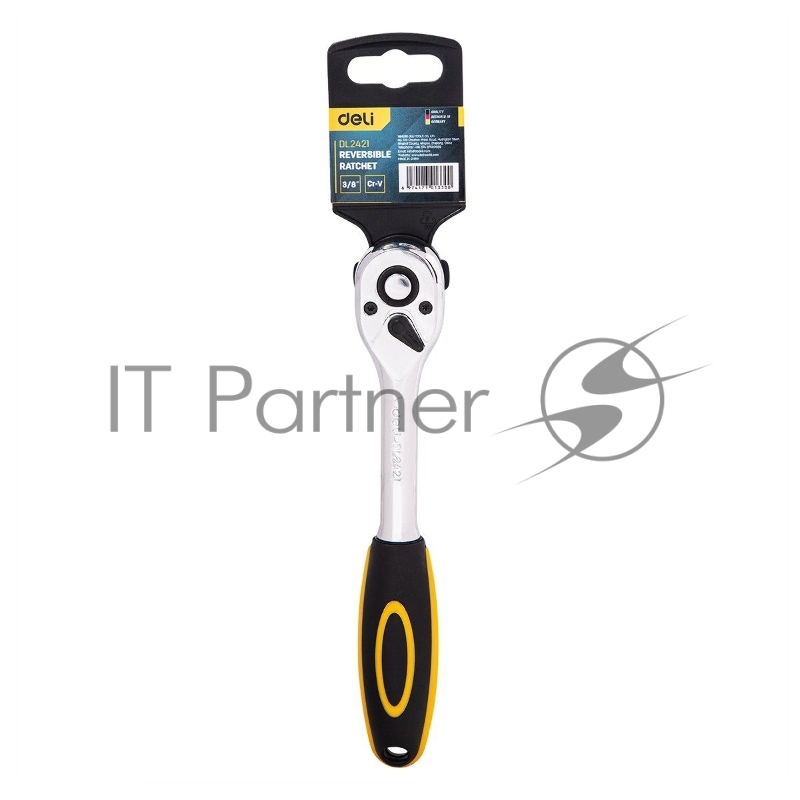 Ключ-трещотка Deli DL2421 3/8 Размер: 200 мм. Двухкомпонентная трещотка, 45 T (зубья), шестерня Cr-Mo, быстросъемная.